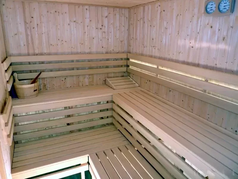 - Szauna: A kültéri szauna tökéletes a relaxációhoz, különösen a hűvösebb napokon.