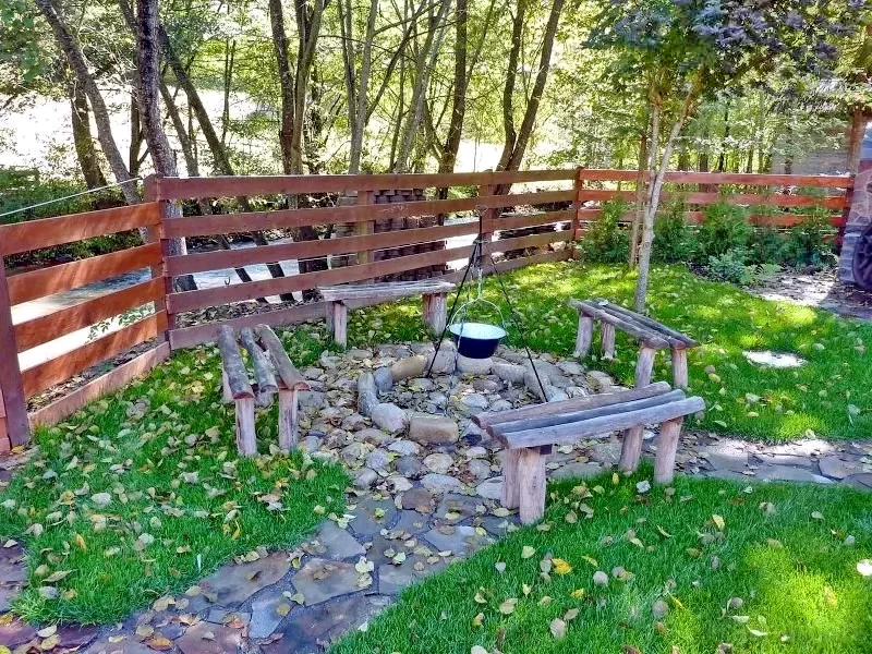 - Az udvaron flekkensütő kemence, szabad tűzhely, bogrács és tárcsalap biztosítja a szabadtéri sütés-főzés élményét.