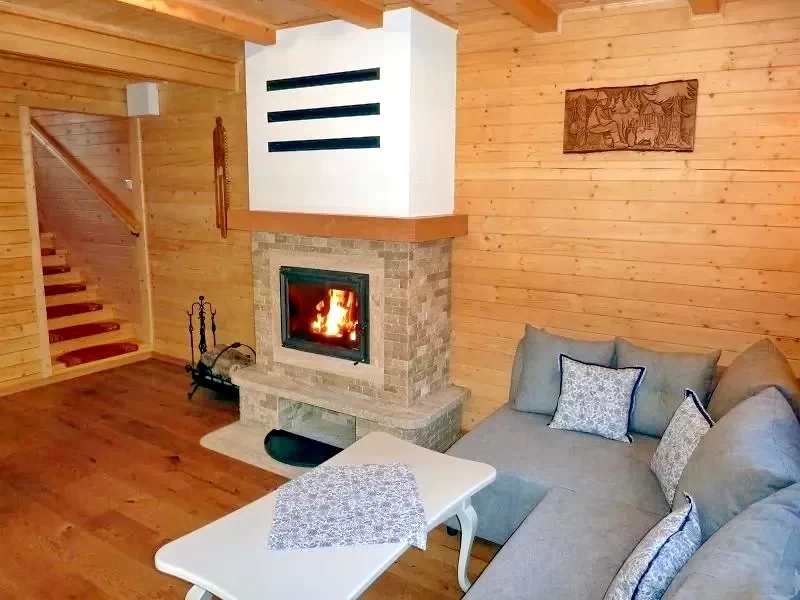 - Nappali: kandalló, Smart TV, kihúzható fotelágy (2 férőhely), vezeték nélküli internet.