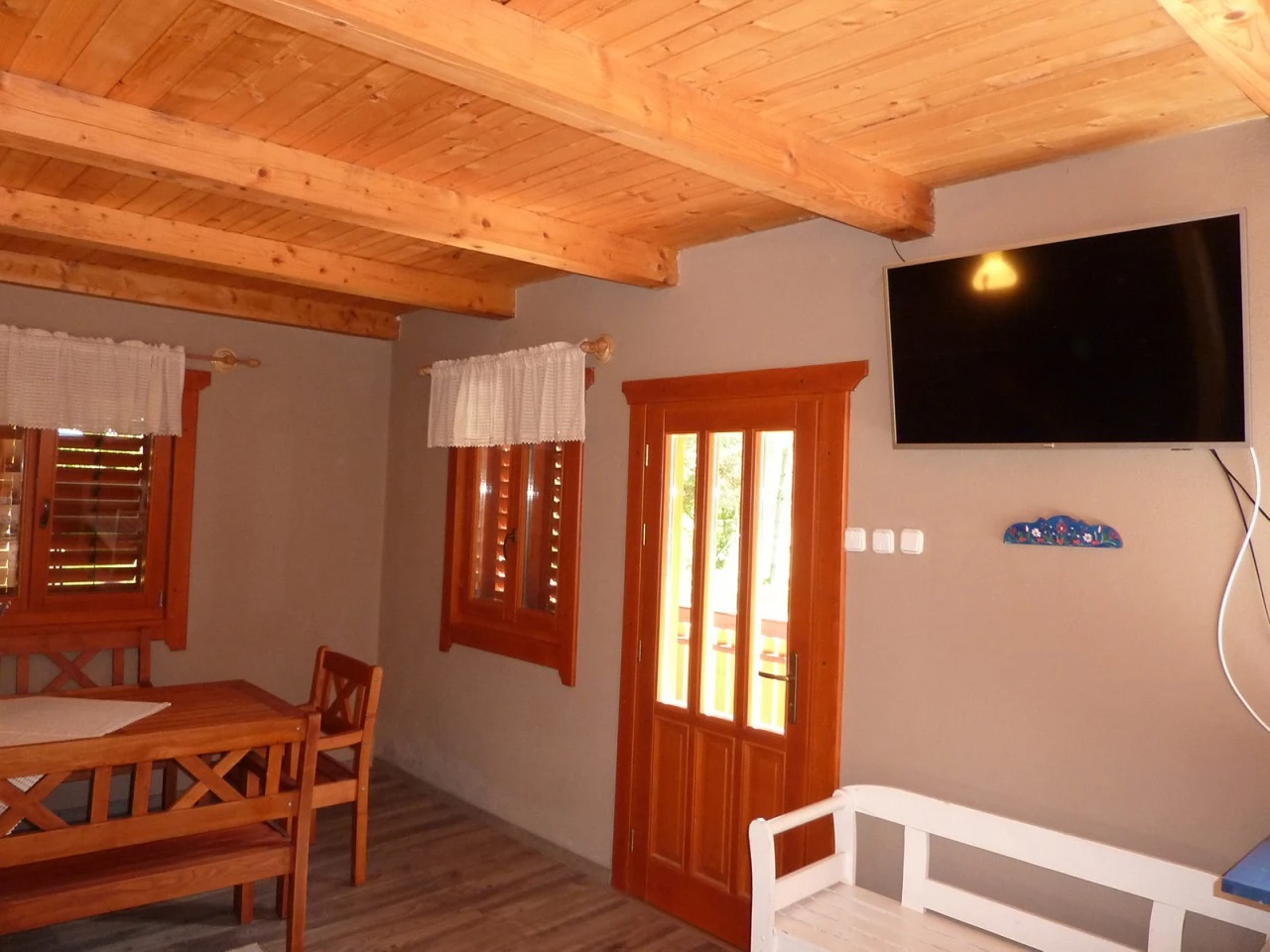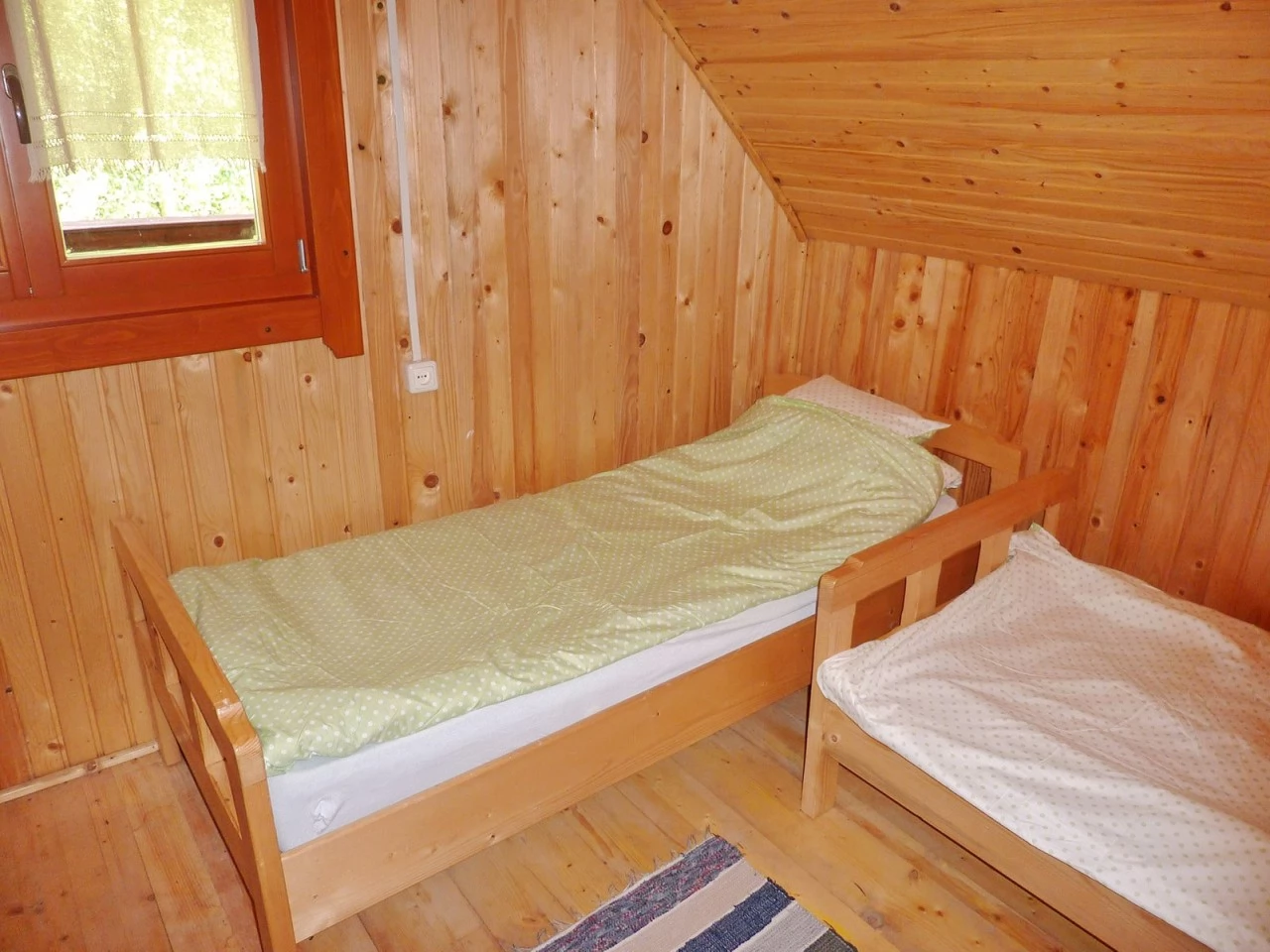 - Az emeleten három szoba várja a vendégeket, mindegyik két egyszemélyes ággyal. A fűtést kandalló biztosítja, a meleg vizet elektromos bojler szolgáltatja, így a ház minden évszakban kényelmes.