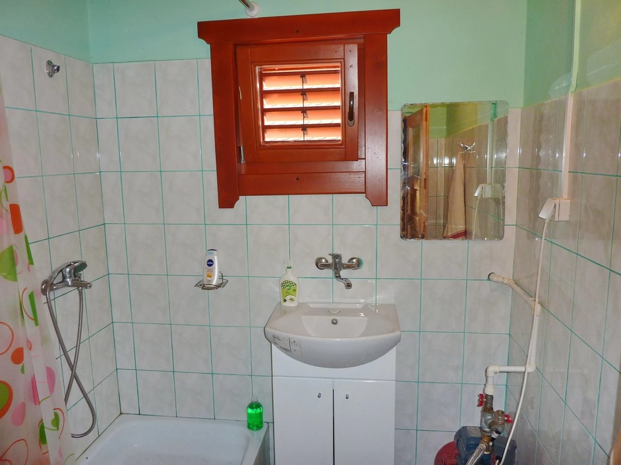 Fürdőszoba: Zuhanyzóval, WC-vel, kézmosóval.