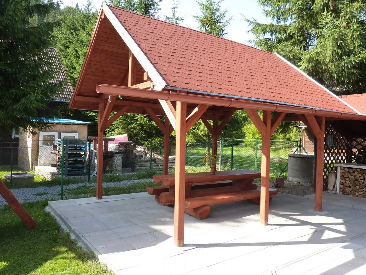Pihenés: Fedett filagória, terasz, napozóágyak, hinta, csúszda, homokozó.