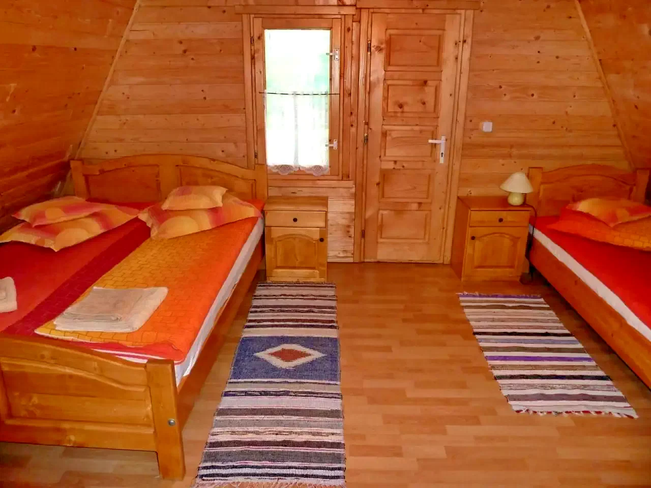 Szobák: Egy szoba franciaággyal és egyszemélyes ággyal (3 fő), egy szoba két egyszemélyes ággyal (2 fő).