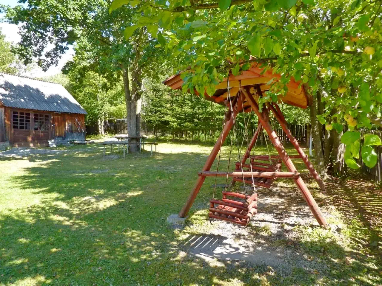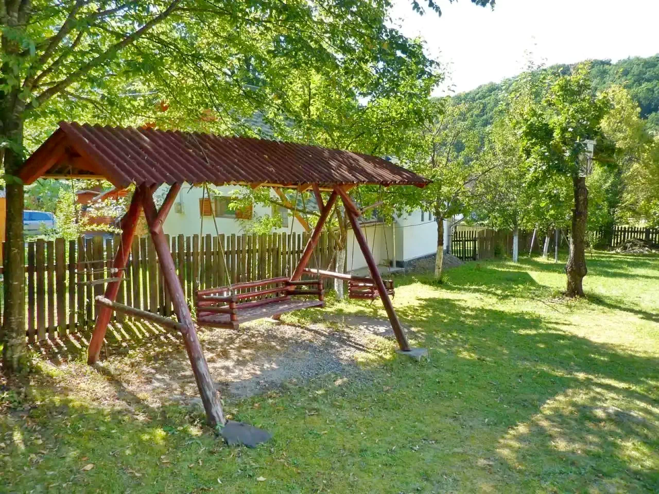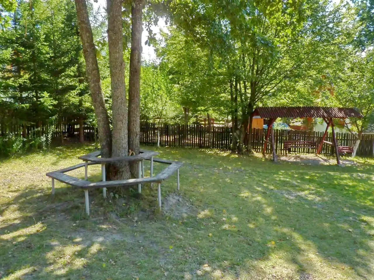 E kulcsosház 1000 m²-es udvara számos kikapcsolódási lehetőséget kínál minden korosztály számára.