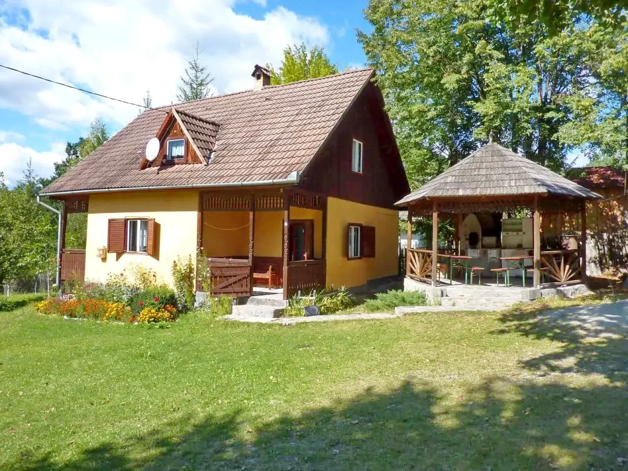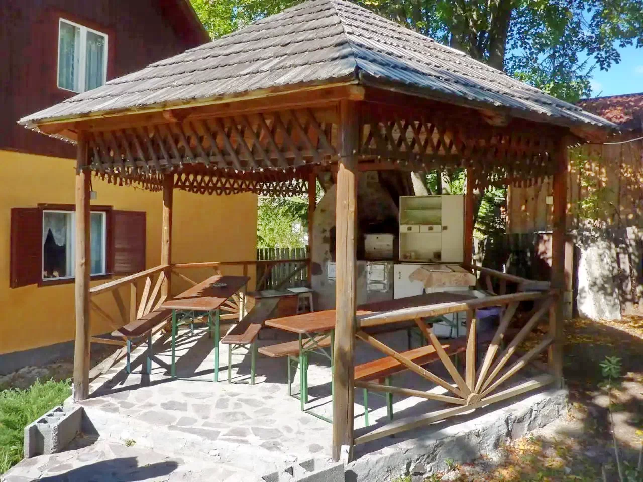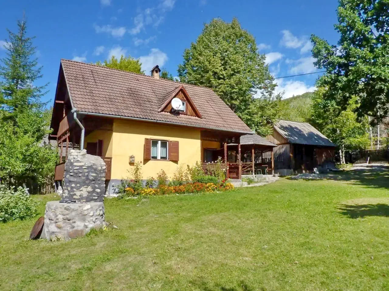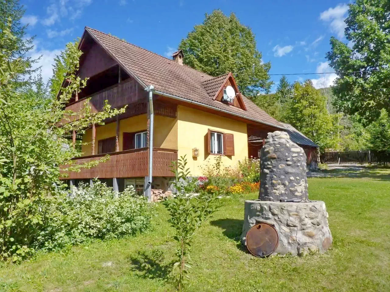E kulcsosház 1000 m²-es udvara számos kikapcsolódási lehetőséget kínál minden korosztály számára.