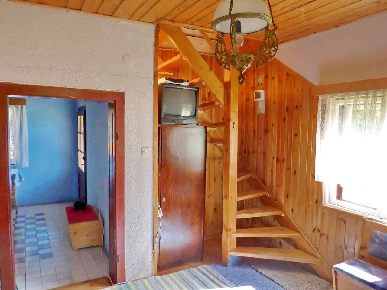 - A földszinten található a nappali-ebédlő, a korszerűen felszerelt konyha, egy fürdőszoba és egy kétágyas szoba.