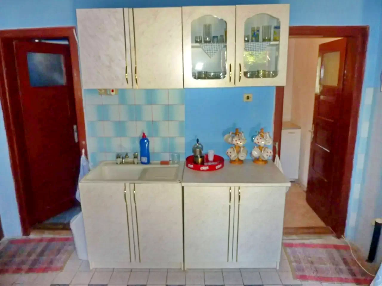 - Jól felszerelt konyha (gáztűzhely, hűtőszekrény, kávéfőző, edények, evőeszközök).