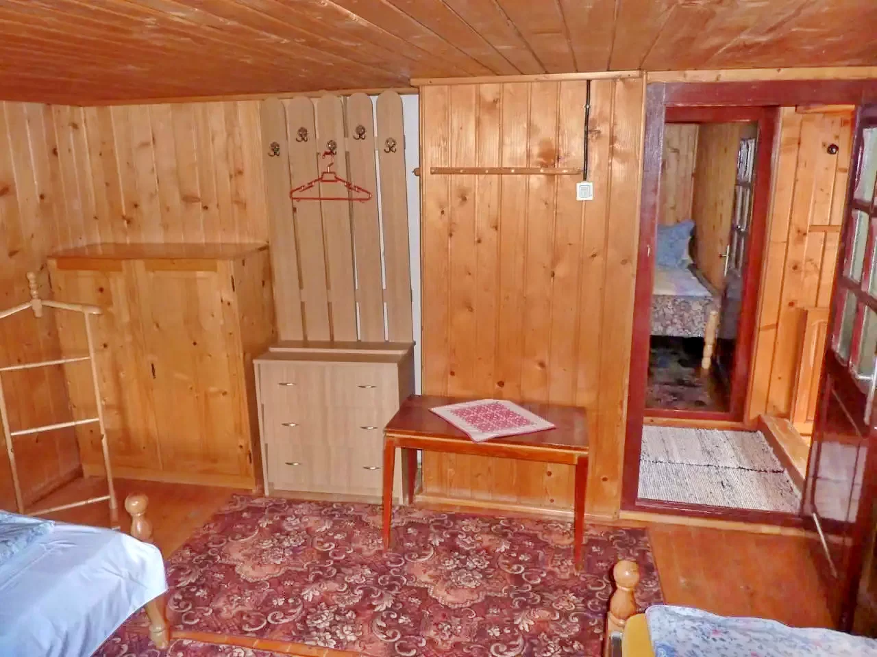 - Emelet: 2 szoba, mindkettőben egy kétszemélyes ágy és egy egyszemélyes ágy (3-3 fő).